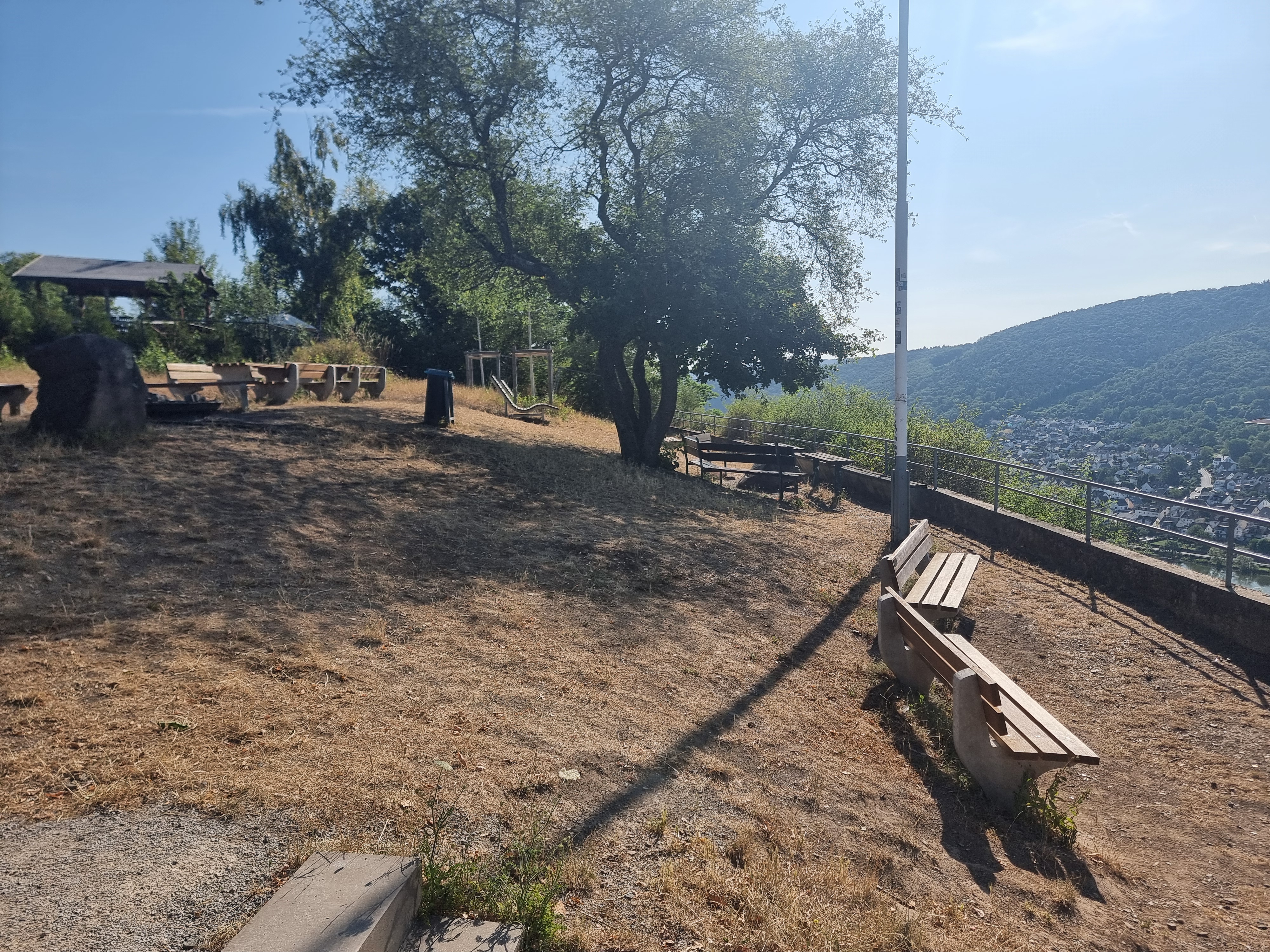 Die steilste Passage lag hinter mir, doch bis zur Moseltalbrücke der A61 zog sich der Weg noch ordentlich. Schritt für Schritt, ohne großes Spektakel. Rechts des Weges liegt die Gustav-Richter-Hütte. Der Blick ins Moseltal ist stark – weit, offen, beeindruckend. Der Haken: Die Autobahn verläuft gefühlt direkt davor. Der Lärm frisst einen Teil der Idylle einfach auf.