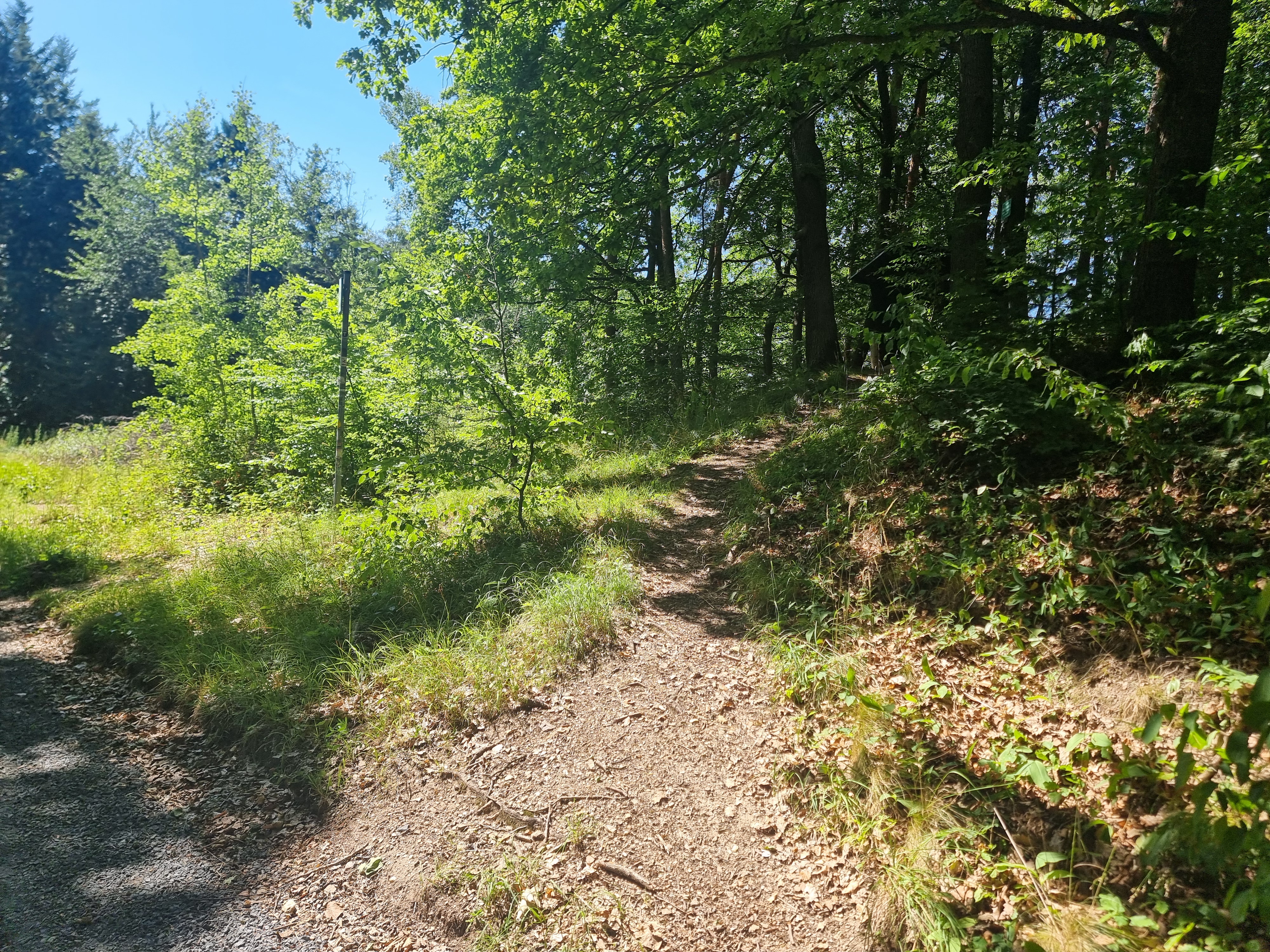 Gegen 15:00 Uhr ging es weiter. Vorbei an der Weidgenhöhe mit gleichnamiger Schutzhütte, dann zur Rot-Weiß-Hütte, die ich links liegen ließ. Der folgende breite Forstweg war wieder monoton. Motivation kam nur noch über die Musik auf den Kopfhörern.
